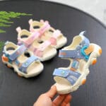 Keep your child’s feet cool and comfortable with our Bear Summer Beach Sandals. Perfect for toddlers and young children, these sandals are designed for both boys and girls. Made from high-quality PU material, they offer breathability, lightweight comfort, wear resistance, and shock absorption. The easy-to-use Velcro closure ensures a secure fit, making them ideal for active kids. Available in pink and light blue, these sandals are perfect for summer adventures at the beach or everyday play.