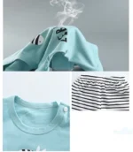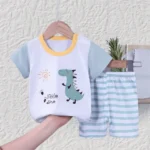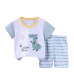 Crafted from high-quality cotton, this set includes a cute cartoon dinosaur print top and a pair of matching shorts. The fabric is soft, breathable, and gentle on your child’s skin, making it ideal for both playtime and bedtime.