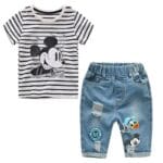 Cartoon Striped T-shirt and Denim Shorts Jeans