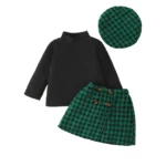 Product Name: Christmas Baby Girl Outfit Set – Knit Tops, Plaid Skirts & Hat (6M-3Y)