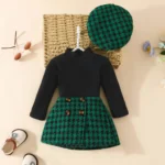- Design: Includes a knit long-sleeve top, a plaid skirt, and a hat, perfect for Christmas and festive occasions.