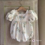 Introducing our charming baby romper with floral puff sleeves, designed in a stylish Korean fashion. This one-piece is perfect for newborn girls, keeping them comfortable and adorable during the summer. Made from high-quality cotton, it features boneless craft for added comfort and a convenient pullover closure.