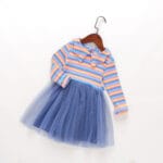 Dress your little princess in our charming Lace-Trim Striped Dress. Perfect for children aged 3 to 8 years old, this Korean-style long sleeve dress features elegant stripes and delicate lace trim, making it a stylish choice for any occasion. Made from 100% cotton, it ensures comfort and durability. Available in vibrant red and light blue, this dress is designed to make your child feel like royalty. The skirt category falls under princess dresses, and it has been meticulously crafted to ensure all hair and remnant thread ends are neatly trimmed.