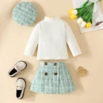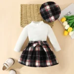 Welcome to my store! Our Toddler Girls Knit Top & Plaid Skirt Set with Hat – Fall & Spring Outfit is perfect for your little fashionistas. This charming set includes a long sleeve knit top, a plaid skirt, and a matching hat, making it an ideal choice for the cooler months of fall and spring.