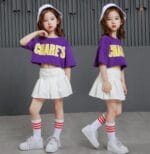 Introduce your little fashionista to this stylish and comfortable two-piece suit, perfect for the summer! The set includes a long-sleeved crop top with a trendy letter print and a matching skirt. Made from a blend of cotton and spandex, this outfit ensures a soft, comfortable fit while allowing for flexibility and movement. Ideal for kids aged 6 to 16, this outfit is perfect for casual outings, daily wear, or even special occasions.