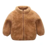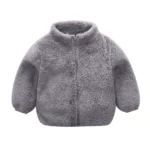 Toddler Kids Cute Zipper Solid Thick Fleece Coat.